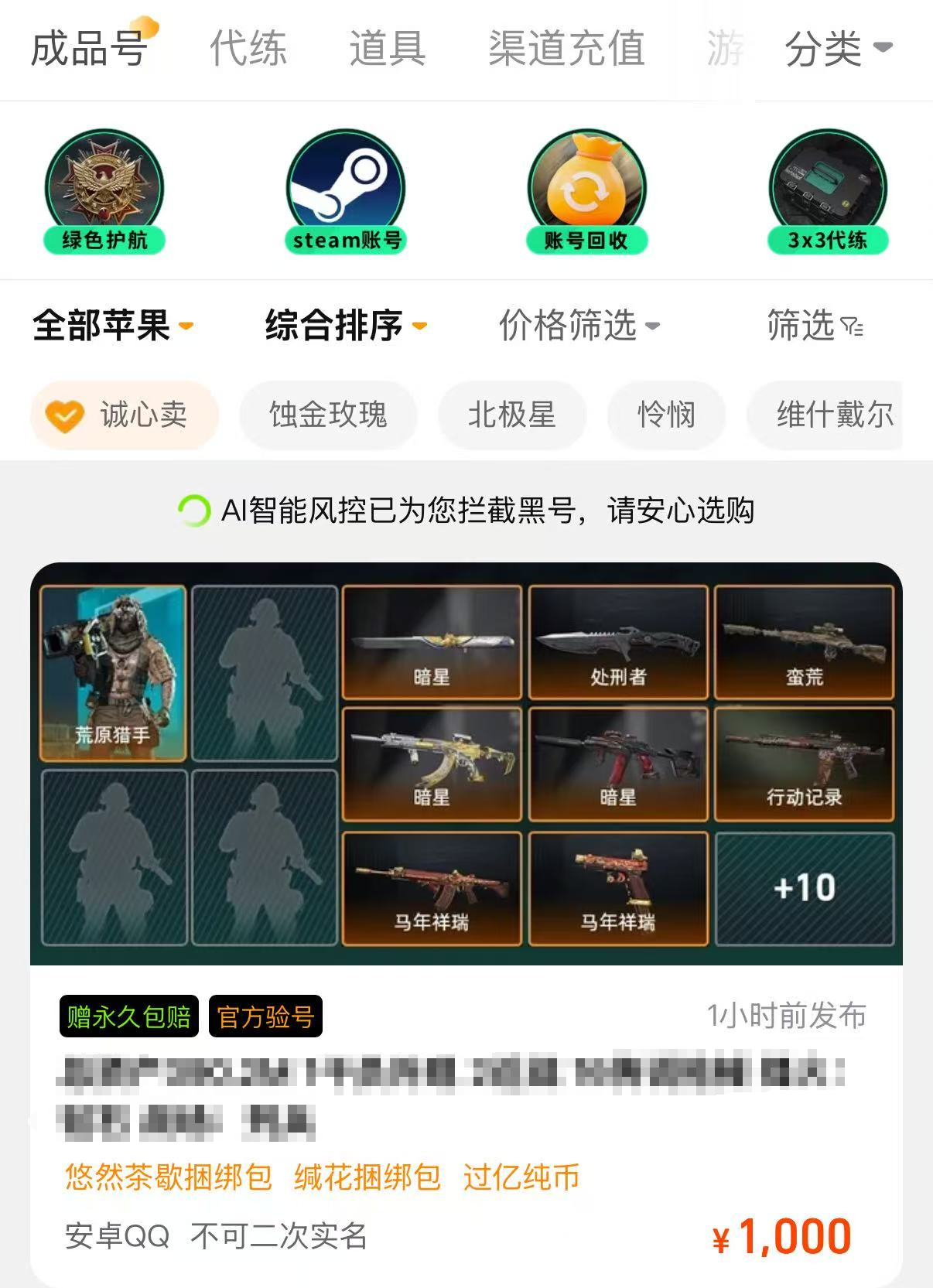 对买家来说,交易猫更是宛如天堂般的平台,商品又多又真实,价格实惠质量上乘,有平台验号提前把关,把假号统统拒之门外。在搜索商品时,系统风控还会主动拦截黑号,大家也可以在安全中心再次验证是否黑号。