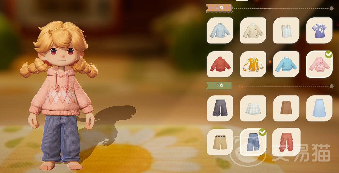 完成面部设定后,进入服装组合阶段。新手期共提供8套基础套装,涵盖上装与下装的标准搭配,风格以日常休闲为主,色彩与剪裁注重和谐统一。只要主色调协调、轮廓比例得当,整体效果均显清爽宜人。后续新增服饰将通过主线任务、限时活动及成就系统逐步解锁。