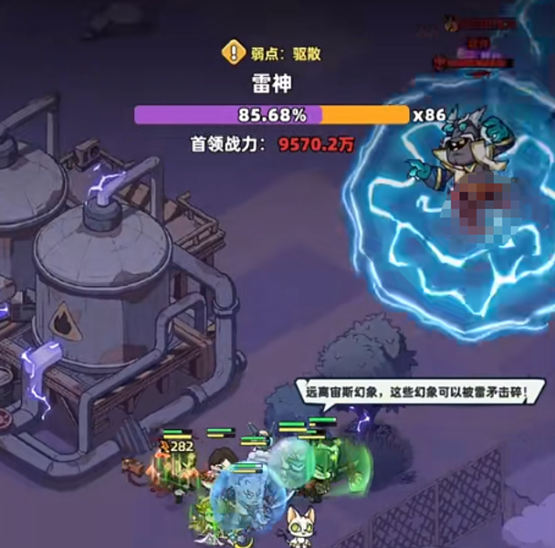 综上,挑战雷神的核心策略在于“节奏控制”:前段专注分身处理与走位避伤,中段预判雷矛路径完成幻象清除,后段抓取虚弱时机全力压血。全程需紧盯技能前摇,尤其警惕环形电流的锁定范围——一旦被完全覆盖,低血量角色将无法脱离,直接判定为秒杀。