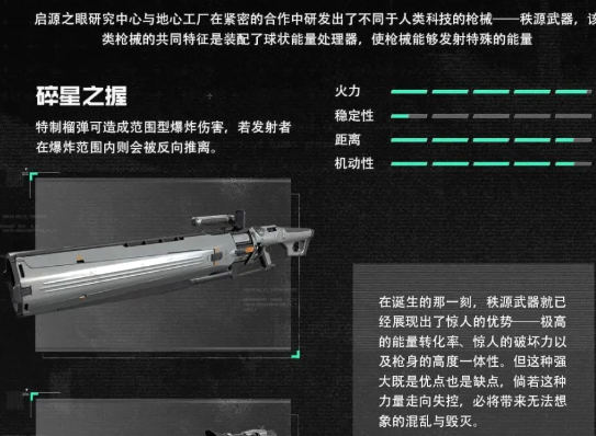 当前已实装的秩源武器涵盖多种战术定位:碎星之握作为榴弹类载具,具备大范围爆破伤害与反向推进机制,使用者可在爆炸瞬间借力后撤,实现攻防节奏切换;审判者狙击步枪专注远程精准打击,全距离命中头部即触发一击必杀判定;穿刺者冲锋枪强调中近距离持续压制能力;暴雨轻机枪则提供高射速火力覆盖支援。各武器均拥有独立校准参数与专属适配逻辑。