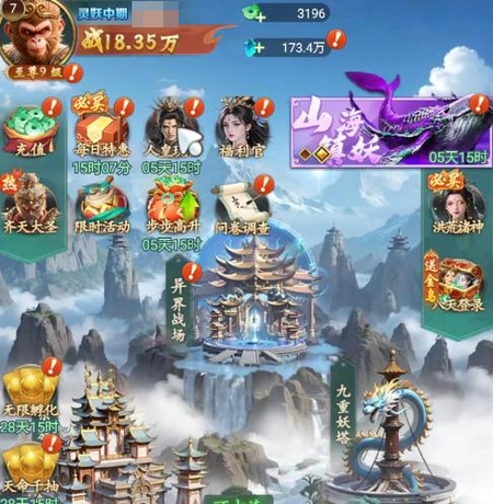 游戏节奏兼顾泛用户与核心玩家需求:挂机系统支持离线资源积累,上线即可领取多档成长奖励;高阶玩法如九妖塔则设置多层难度梯度,融合探索解谜与阶段式挑战,满足进阶用户的操作深度诉求。