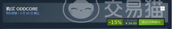 当前ODDCORE在Steam平台售价为40元,限时促销活动截止至3月20日,可享15%折扣,折后价为34元。该优惠适用于所有新购用户,建议把握时间节点完成购买以获得更高性价比。