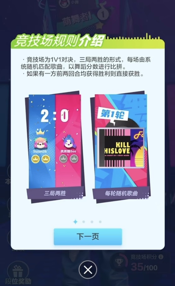 竞技场采用标准的三局两胜制,系统将自动为双方匹配三首曲目,曲目不可更换、全程随机生成,确保对战环境公平透明。胜负判定依据单局得分总和,分数更高者赢得该局;率先赢下两局的玩家获得整场胜利,并同步解锁段位晋升资格与专属奖励。