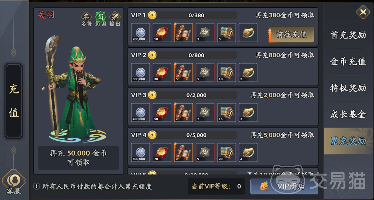 首充礼包提供诸葛亮武将,属初始战力构建关键角色;累计充值达指定额度后可解锁关羽武将。二者均为当前版本主力阵容核心成员,具备高成长性与战术适配性,推荐新玩家优先完成首充以建立初期优势。