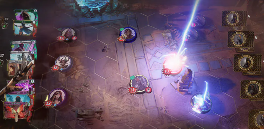 在玩法层面,火焰审判融合战棋布阵与动态卡组构建两大核心要素。玩家需在六边形棋盘上部署英雄单位,通过移动、攻击与技能释放影响战场局势;同时,每回合抽取卡牌执行指令,包括增益施放、地形干预、单位控制等操作。胜负判定不仅依赖单位存活,更强调区域压制与战术连携,地形高低差、障碍物遮蔽等环境变量均会直接影响技能范围与行动路径。