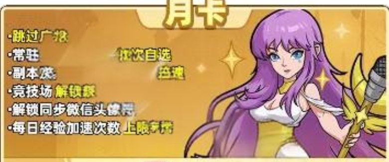 面向深度体验用户,平台构建了阶梯式订阅体系。除基础首充与礼包外,新增周卡、月卡及终身卡三类服务模块。其中周卡侧重资源产出倍率提升与离线挂机效率加成;月卡聚焦每日经验获取增幅与战斗动作加速,助力主线任务高效推进;终身卡则在前述功能基础上,额外集成广告屏蔽、稀有角色购置折扣、技能学习槽位扩容等进阶权益。