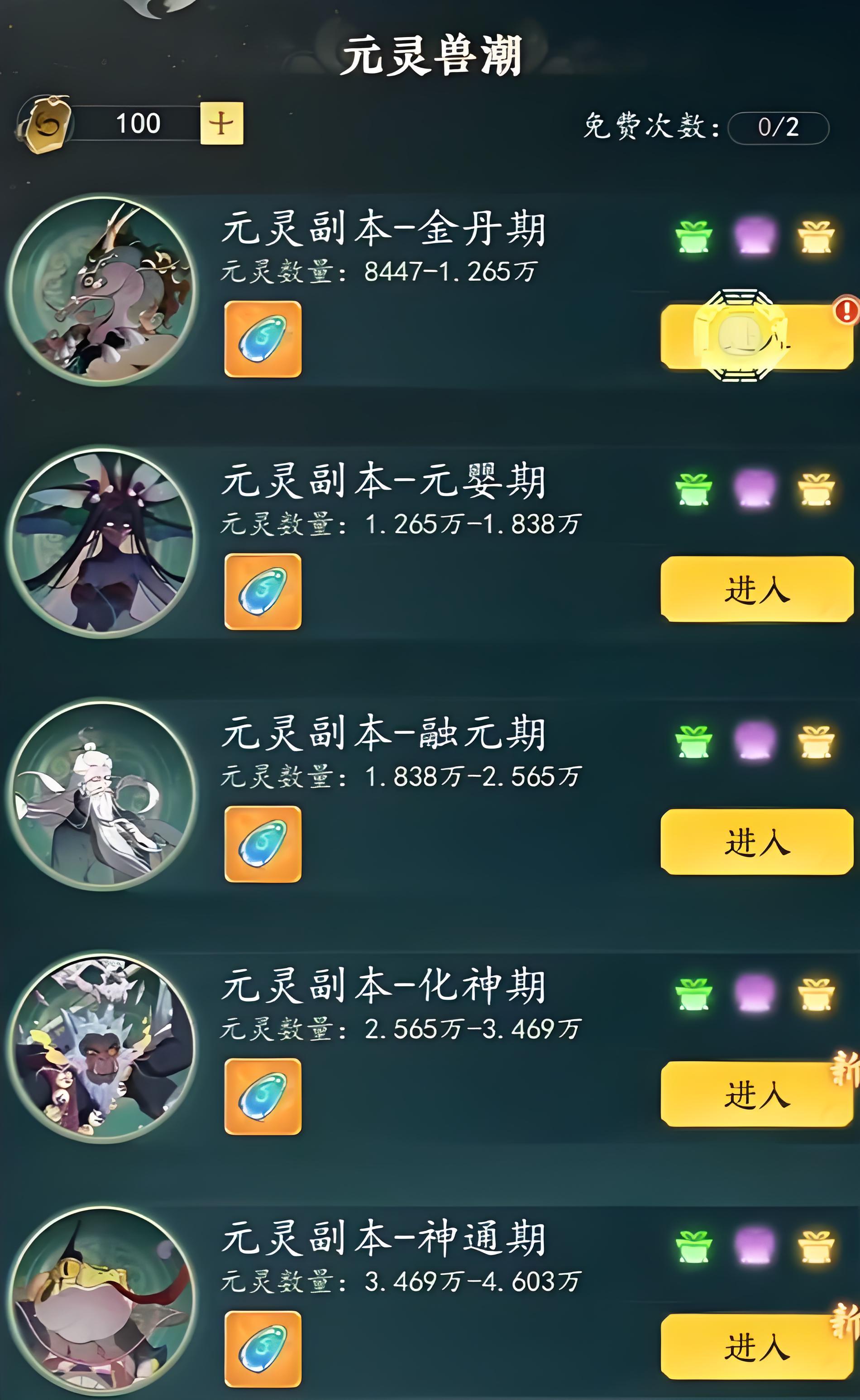 主线通关后,元灵副本成为重要日常内容。该副本支持按战力分级挑战,进入后将遭遇多波兽潮围攻。成功清剿全部怪物及最终BOSS,即可获取大量经验、通用货币,并享受高密度战斗带来的沉浸式“割草”体验;需注意的是,所有目标须在规定时限内完成击败。