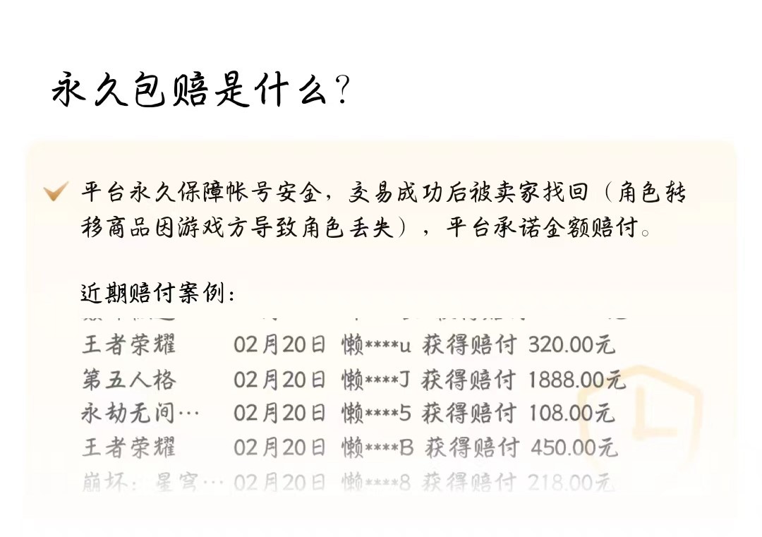 值得一提的视频,它还提供永久包赔服务,如果买家账号异常无法登录,又或者是信息不符,那么可以向交易猫追求售后赔付,因此对于买家来说,选择这个平台是很靠谱的,卖家在这上面就更容易卖号了。