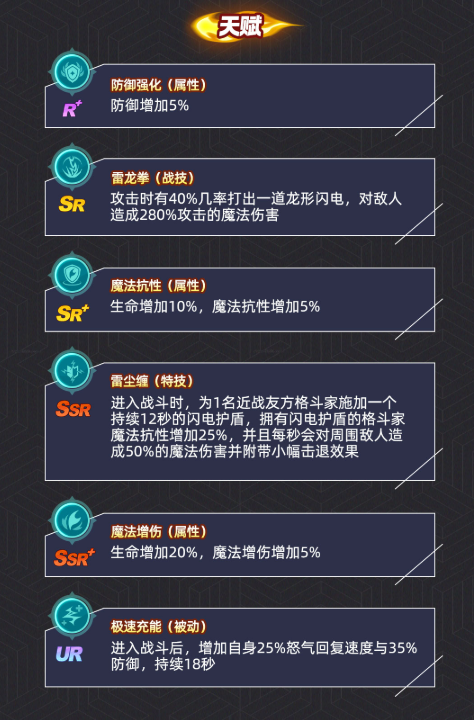 天赋系统需分阶段投入。前期红丸生存短板明显,应优先激活提升5%防御力的天赋节点,延长其在前排施法与支援的持续时间。待基础生存达标后,转向均衡发展路径:依次强化魔法攻击力、最大生命值与魔法抗性三项属性,最终实现“站得住、打得狠、扛得久”的三维协同,确保其在多轮战斗中始终维持战术存在感。
