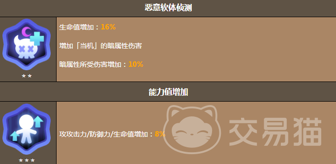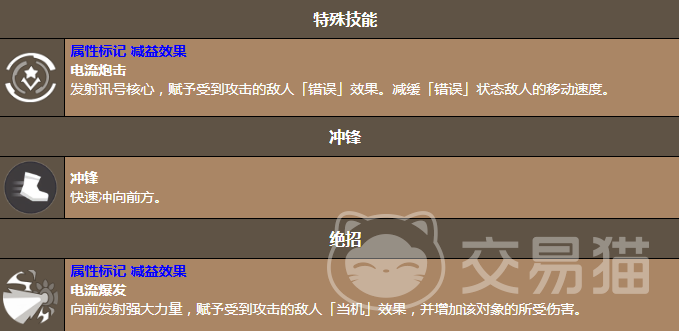 星级成长路径清晰且效果显著:二星解锁【恶意软体侦测】,在提升基础生命值的同时,强化全部暗属性伤害;三星实现全属性小幅上浮,攻、防、血三维均衡增强,显著优化持续作战能力;四星版本更新后,防御力获得质变提升,同时【电流爆发】与【电流炮击】技能伤害提高25%,整体威慑力跃升。需注意的是,该角色存在短暂僵直弱点——遭遇未预设的突发状态变化时,会出现约0.8秒的动作中断,类似系统响应延迟。