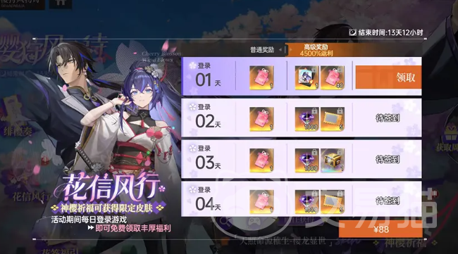 在“绯樱奏”剧情副本中,玩家将与矢吹樱等角色共同推进关键战役,经历高张力叙事体验。通关指定关卡后,可直接获得钻石奖励;“花信风行”签到系统则提供连续7日免费领取机会,每日可获取1枚“神樱御守”,总计7枚。