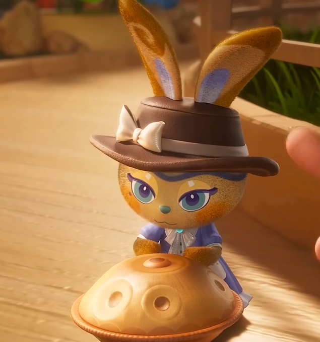 嘉儿为乌噜村裁缝铺经营者,属兔兔粒亚种,主导服装系统功能。其设计风格以自然系为主,擅用碎花棉布与镂空蕾丝组合,作品兼具实用性与装饰性。作为知名设计师露露的追随者,她可提供服饰定制服务,并基于玩家当前装扮给出搭配建议,是外观养成线的核心支持角色。