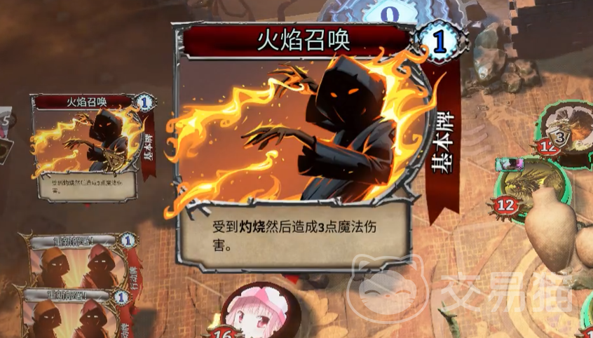“火焰召唤”虽属基础卡牌,却是该流派战术哲学的具象体现:先承受灼烧伤害,再对单体目标造成3点魔法伤害。表面看是负向交换,实则构成核心资源转化链——主动承担灼烧可激活多类被动技能与装备特效,将生命值损耗转化为持续输出动能。在多目标场景下,配合“力量飞弹”等辅助卡,该牌可成为点燃全场灼烧连锁的导火索,使敌方在叠加燃烧的同时陷入我方范围火焰风暴的压制之中。