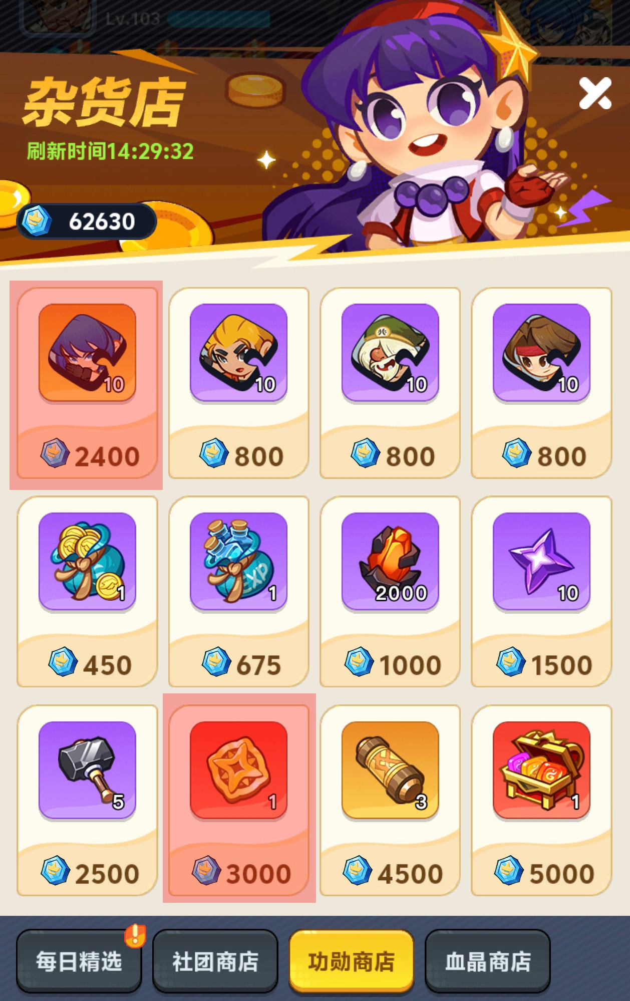 功勋商店消耗功勋币,主要通过挑战世界Boss玩法获得。采购优先级依次为:黄金勋章(与社团商店同理)、莉安娜碎片(关键控制型角色补强)、陨铁(高阶装备锻造核心材料)。其余商品可视当前资源盈余情况灵活选择,无需强求满额兑换。