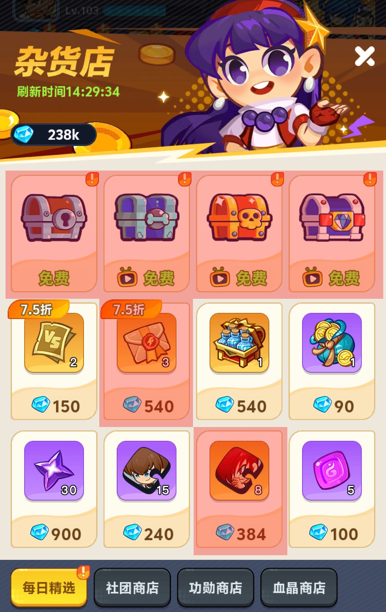 每日精选商店以低门槛高回报著称。每日固定提供四档免费礼包,内含钻石、英雄碎片、经验药水及金币等基础资源,务必全额领取。付费区商品每日轮换,常见品类包括进阶石外卖、指定英雄碎片、经验材料、通用金币与邀请函。其中邀请函为稀缺资源,常以大幅折扣形式出现,建议优先购入;其余商品则按当前培养阶段动态判断——若主力角色碎片处于短缺状态,即使无折扣也应果断入手,该渠道是碎片补缺的重要稳定来源。