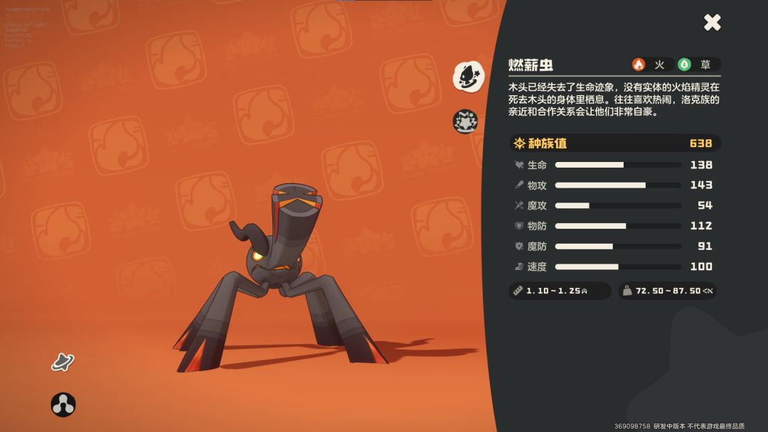 燃薪虫拥有极高的物攻面板与出手速度,在实战中能快速抢占节奏。其专属特性“煤渣草”具备环境强化效果:当燃薪虫在场时,所有火属性攻击对目标造成的灼烧效果将获得额外增幅。该机制使其在面对非火系首领Boss及常规图鉴怪物时,展现出极强的清图效率与压制力。