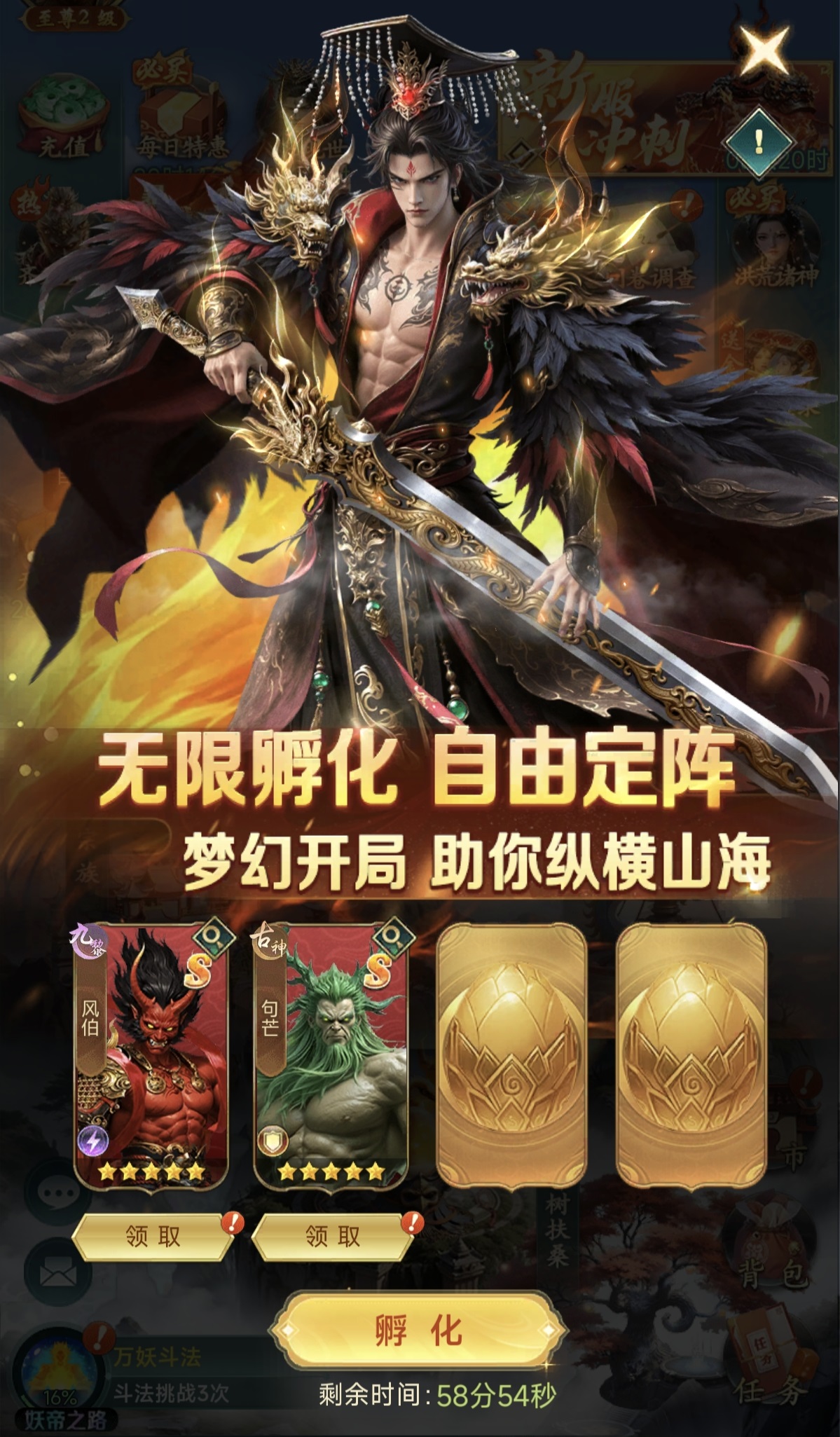 孵化行为所需的核心道具为“异兽蛋”,可通过多重日常与阶段活动稳定获取。开服初期的连续8日登录奖励、阶段性充值回馈、战力排行榜冲刺任务等均配置大量异兽蛋发放。只要按主线节奏稳步推进,组建初始核心阵容毫无压力。尤为值得注意的是,游戏首发阶段同步开启“无限孵化”限时活动:玩家可在该活动中不限次数参与孵化,所有结果实时暂存,最终择一最契合自身需求的异兽领取,是前期快速锁定T0级角色的重要窗口期。