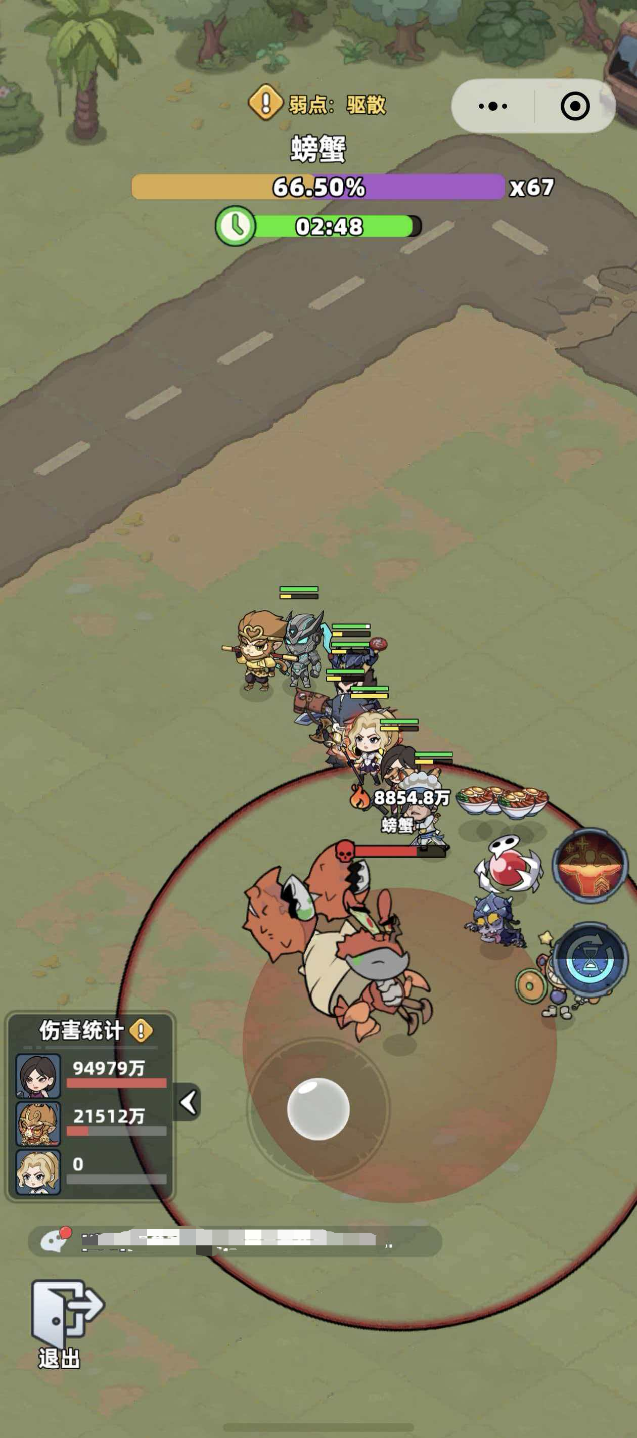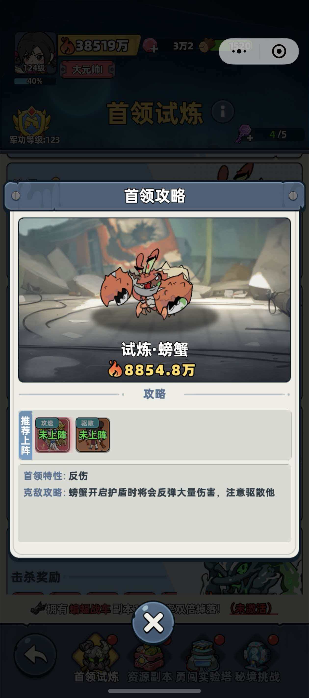因此,挑战前必须确保队伍综合战力接近Boss水平,这是成功的基础门槛。在此前提下,深入理解其战斗逻辑比盲目提升数值更重要。螃蟹Boss不具备常规风筝可行性,其核心机制围绕“距离重置+自动回满”与“负面效果施加”双重设计展开。