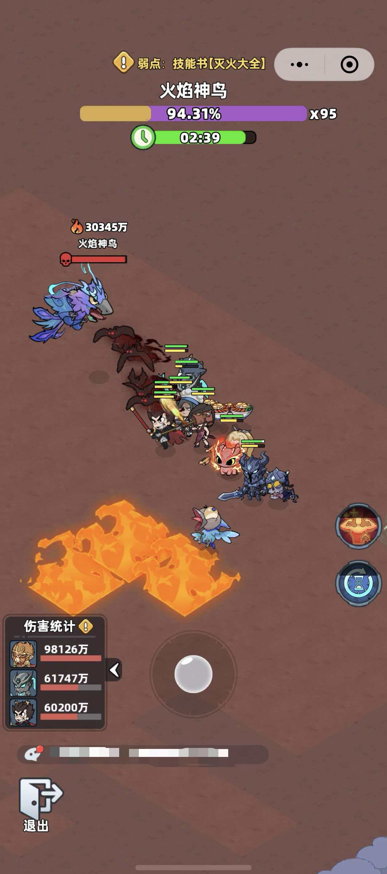 火焰神鸟为纯火属性Boss,其核心机制围绕“持续灼烧”与“区域封锁”展开。针对其属性弱点,必须为至少一名上场幸存者装配技能书《灭火大全》。该技能书可显著削弱Boss火系技能的附加效果,并降低灼烧持续时间与伤害倍率。操作路径为:进入战斗准备界面→点击“技能书”标签→选择任意幸存者→装备《灭火大全》后确认出战。