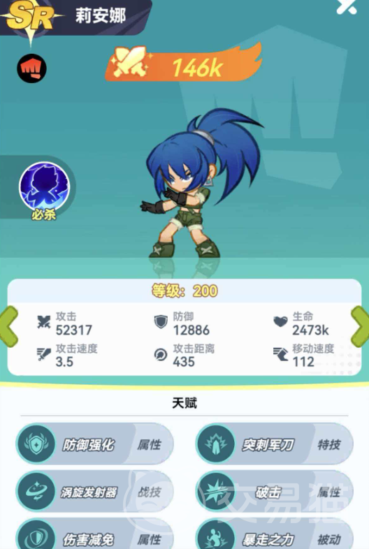 《最强斗王》以高密度打击感与快节奏连招为核心,复刻街机格斗的热血氛围。在众多角色中,SR品质格斗家莉安娜凭借其不可替代的战术价值脱颖而出——她并非泛用型输出,而是专精于瞬时斩杀与战局逆转的关键执行者。
