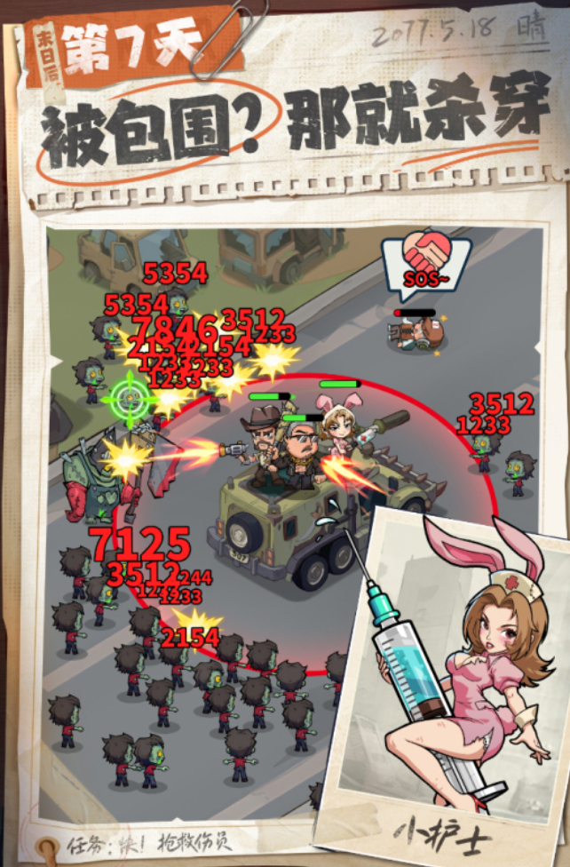 开荒期(第1–7天)的核心目标是建立生存基线。在资源极度紧张的前提下,饮水与食物必须列为绝对优先项;木材与石料则需维持每日最低储备:木材≥80单位、石料≥50单位。建议采用功能化小队配置——以高耐久的坦克变异人麦克雷承担主力清怪任务,应对密集尸潮;辅助型角色艾达负责群体压制与战术牵制;治疗定位的空姐则保障团队续航能力,确保探索行动可持续推进。此阶段切忌盲目扩张人口或过度升级建筑,避免资源结构性失衡;野外探索应严格遵循由低至高、由近及远的原则,回避高等级丧尸区域,以稳守为第一要务。