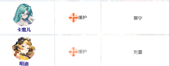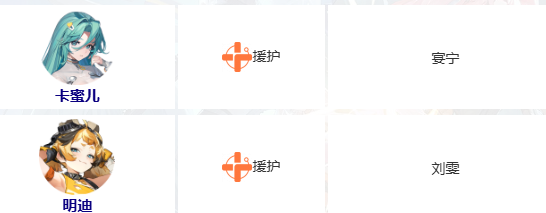 援护位由卡蜜儿与明迪承担,主要职责是提供持续治疗、增益效果或战术支援,保障队伍续航能力与战斗持久性。