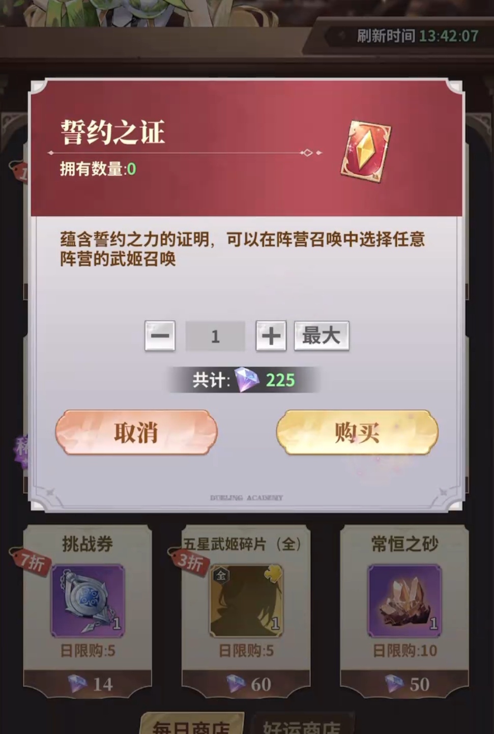 游戏内设有多个功能性商店:竞技商店用于兑换誓约之证;工会商店可使用公会积分换取武姬天启石——该货币稀缺度高,是提升武姬关键属性的重要资源;兑换商店则依赖誓约之证产出积分,供玩家按需配置资源流向。