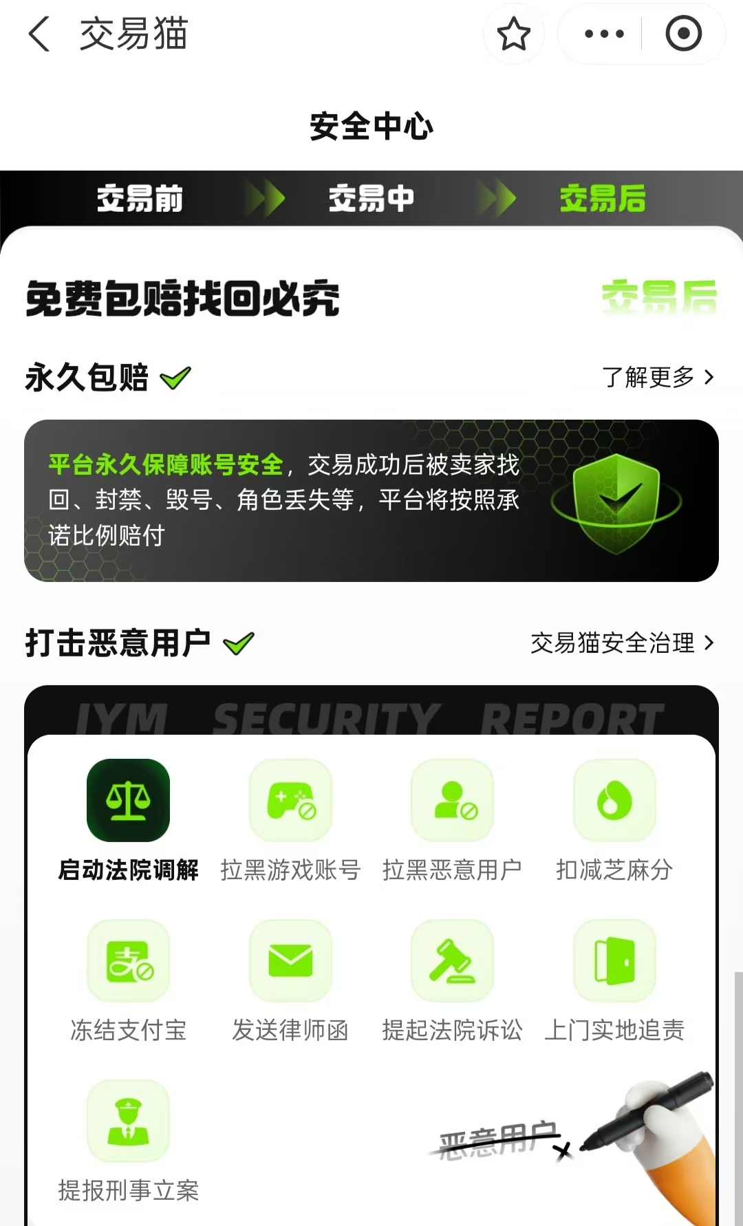 另外,交易猫为王者游戏交易账号设置了全周期风险防护方法,带专属保障标的游戏账号,交易完成后能享受长期赔付支持,若是遇到了保障范围之内的异常情况,平台会严格按照规矩赔付,这份保障从账号交付和后续使用过程中都有用。
