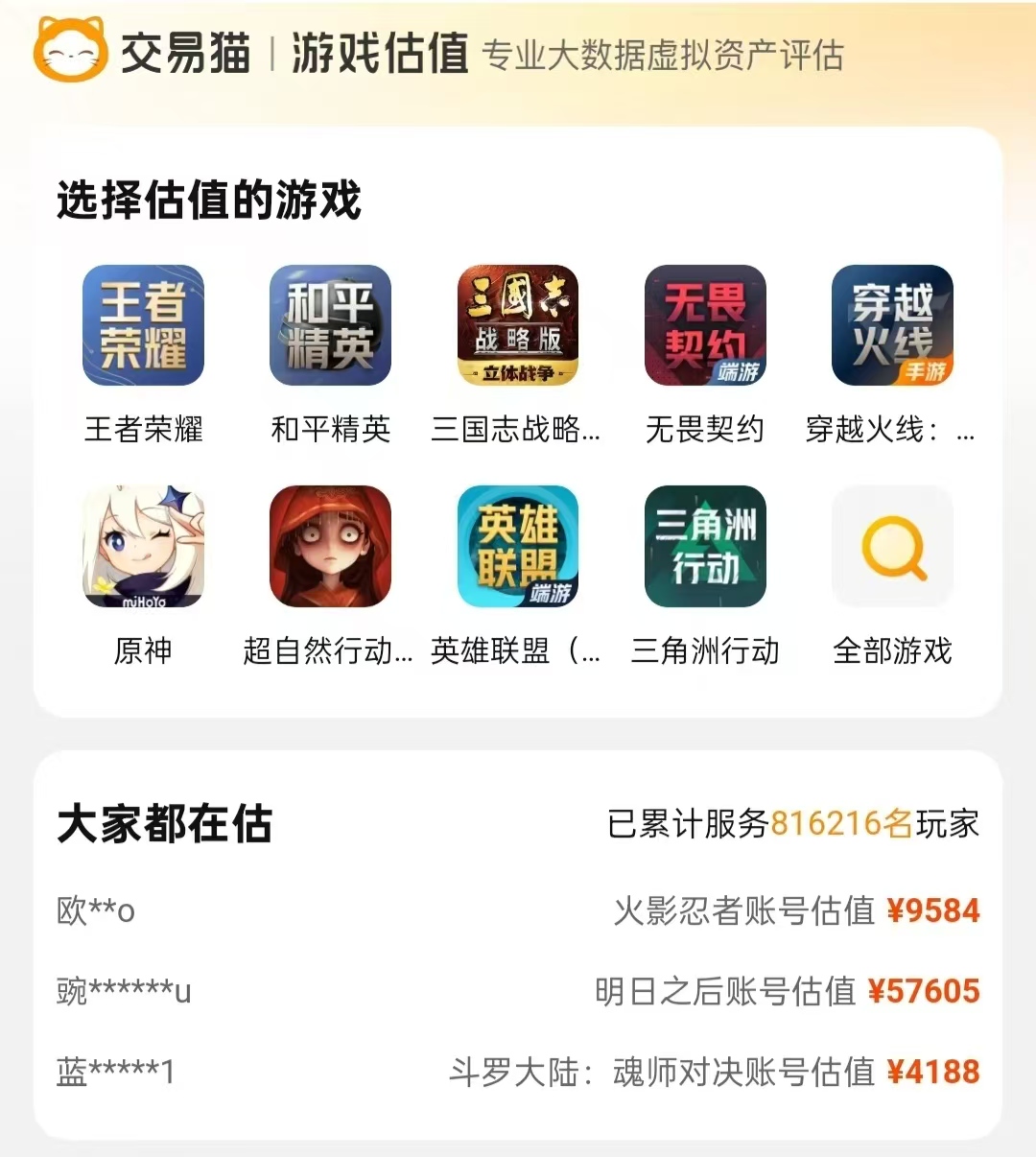 卖号比较在意的其实就是价格合不合理,交易猫拥有专门的智能估值工具,会根据卖家王者荣耀的段位、英雄数量、皮肤稀有度这些情况,生出最为合理的参考价,这样不会让卖家卖亏了,也能避免因为报价过高而导致无人问津。