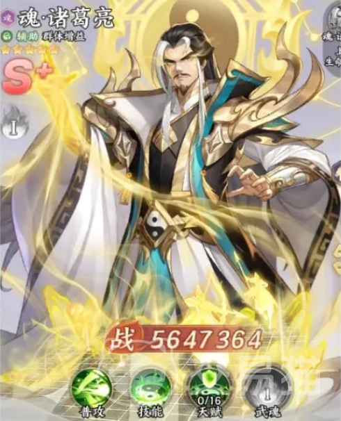 第三位为魂·诸葛亮。本体已具备稳定辅助能力,而魂形态进一步强化其续航价值:新增大招群体回血效果,使其更适配辅助位。1魂时必杀追加概率为50%,随魂阶提升,“八卦阵”技能命中目标数将呈倍数增长,治疗量与回怒效率同步提升;至3魂、4魂阶段,生存向天赋全面激活,包括减伤强化、异常状态抵抗及持续护盾等,逐步向团队前排承伤角色演进。