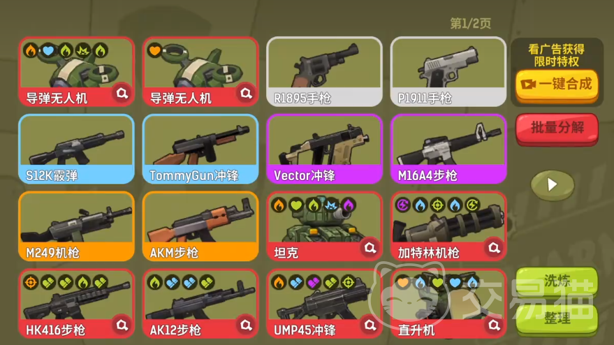 在《嘎嘎射击》中,武器系统采用六阶品质分级机制,从低到高依次为白色、绿色、蓝色、紫色、橙色、红色。初始阶段玩家仅能获取白色品质枪械,通过持续参与对战积累基础装备,并完成5次合成升级后,即可最终升至红色品质——该等级即为当前版本中的最高战力配置,也被广大玩家普遍称为“黄金装备”。需特别说明的是,“黄金装备”并非游戏官方命名,而是社区基于其顶级属性形成的通用称谓。