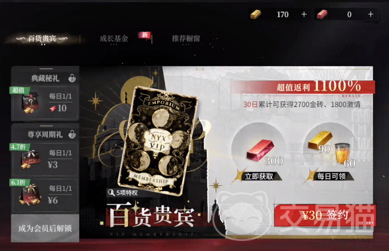 本作采用完全自愿付费模式,无任何强制消费设计。零氪玩家可通过日常任务、活动副本及成就系统稳定积累资源;而希望提升养成效率的用户,则可依据自身节奏选择适配的充值方案。入门级选项为6元首充礼包,含“上任致礼”及连续三日登录奖励;进阶方案为30元百货贵宾计划,生效期为30天,期间每日可领取金砖、红砖与激情值,总计可获2700金砖、300红砖及1800激情值。
