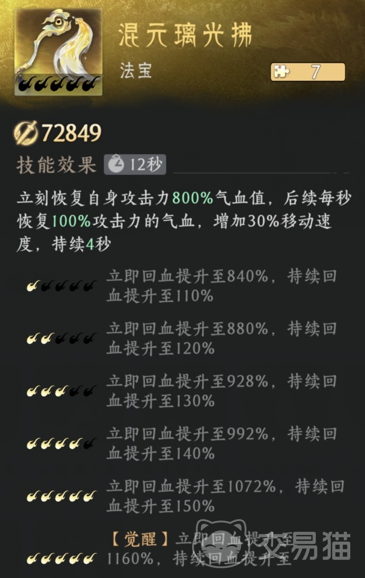 混元璃光拂则承担核心辅助职能:首次释放即恢复大量生命值,并进入持续治疗状态,同时提升角色移动速度。该增益不仅强化续航能力,更通过机动性加成优化走位空间,在规避技能、调整站位及追击逃逸等操作中发挥关键作用。