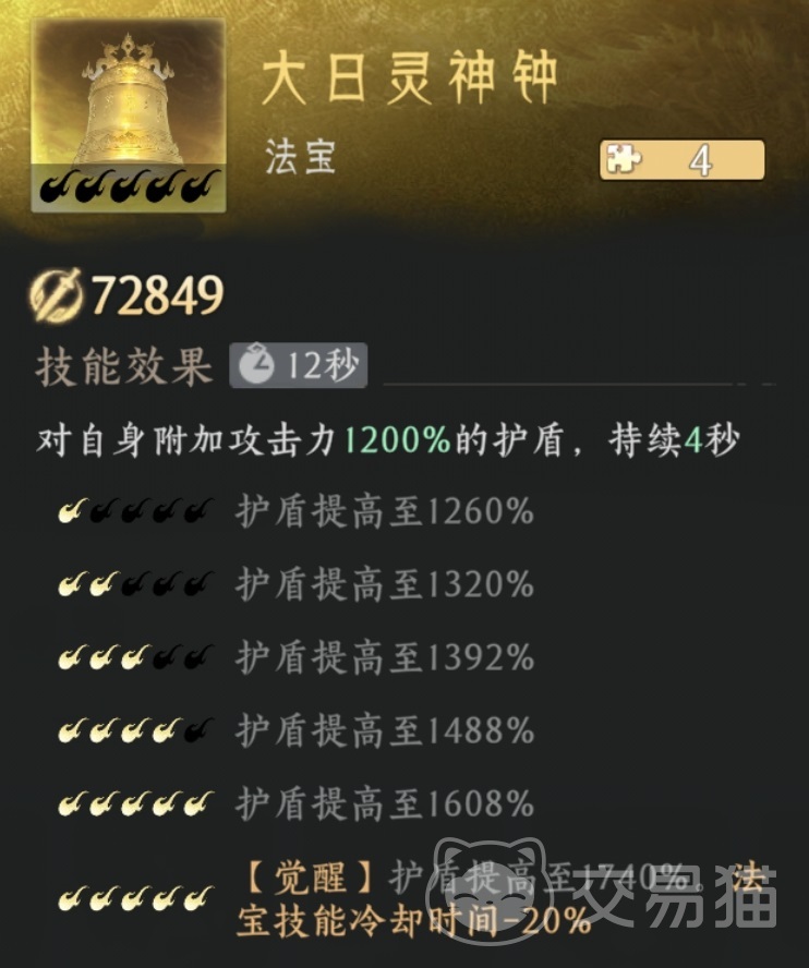 大日灵神钟是当前防御体系中的关键组件,激活后立即为自身生成高额护盾值。在本作战斗机制中,护盾具有独立承伤判定逻辑,能有效缓冲爆发伤害,显著延长角色生存时间。