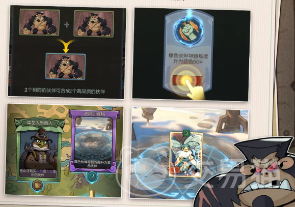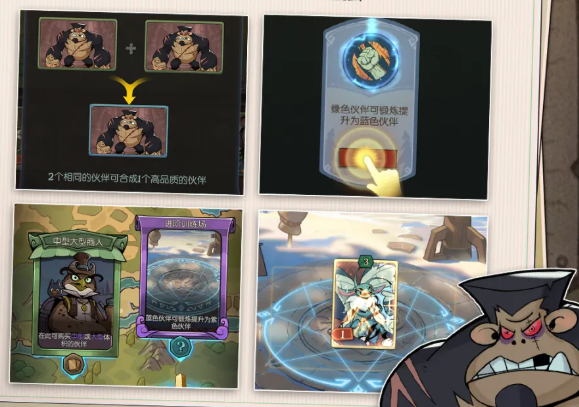 伙伴成长体系包含奖励获取、合成进阶与训练场特训三大路径,确保角色在长线旅程中持续进化。途中还将随机遭遇商人交易、圣光护佑、鸡尾酒特供等多样化事件,提供临时增益或战略转折点。赢得全部奖杯即达成胜利目标;若挑战失败,则扣除一定信心值,玩家可更换花匠、铁皮人或龙女主角三位主角之一,重新开启寻宝征程。