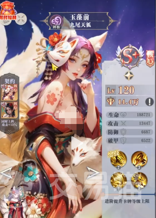 玉藻前是专精长线作战的法师型角色,适用于高血量目标压制与跨战力挑战场景。其技能具备多段法术伤害特性,并附带中毒持续伤害效果,在对抗高生命值单位时具有显著克制优势。技能冷却周期短,循环节奏快,可持续施放高频伤害段数。中毒效果可在技能间隙持续削减敌方血量,即便整体战力略低于副本推荐数值,亦可通过稳定DOT(持续伤害)机制完成通关,是攻坚持久战副本与挑战高难度BOSS的优选配置。