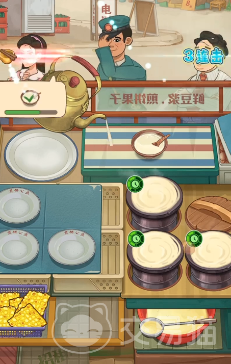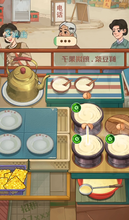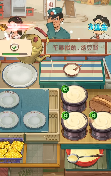 随着资金积累与声望提升,玩家可逐步拓展经营版图:新增豆浆制作台,实现“煎饼+饮品”套餐式销售,有效拉升单客消费额;后续更可解锁多线并行操作,同步处理煎饼与豆浆订单,应对客流高峰挑战。