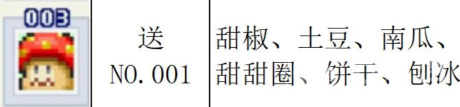 编号003的怪物偏好覆盖范围最广。原材料类中,甜椒、土豆、南瓜、番茄均为优选;甜食偏好与001号部分重合,涵盖饼干、刨冰、甜甜圈、烤红薯、黑糖年糕;另具独特收藏向倾向,蜂巢人偶、魔法灯、水晶球、剪刀、镜子等道具均可触发显著满意度反馈。