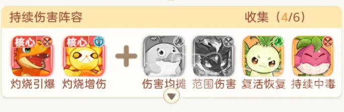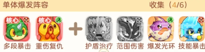 第二套进阶向阵容建议配置为:咕咕鸡、小绿蜥、圆河豚,搭配一名功能型随机定位角色。此套方案更侧重中期过渡与属性克制应对,尤其适合面对高回复类敌人时使用。小绿蜥作为核心输出,其单体爆发与技能倍率在同阶角色中具备明显优势——即便处于第一形态,仅需等级达到7级即可发挥可观战力;待升至成长期后,暴击流加成效果将进一步放大其上限。咕咕鸡承担团队增益与能量调度职能,圆河豚则提供关键的暴击率补充与生存韧性,二者共同弥补小绿蜥在机制稳定性上的潜在短板。需特别注意:树精虽有类似功能,但其技能效果存在较高随机性,易干扰小绿蜥的输出节奏,因此建议前期以圆河豚替代,待树精完成技能固化与属性强化后再考虑替换。