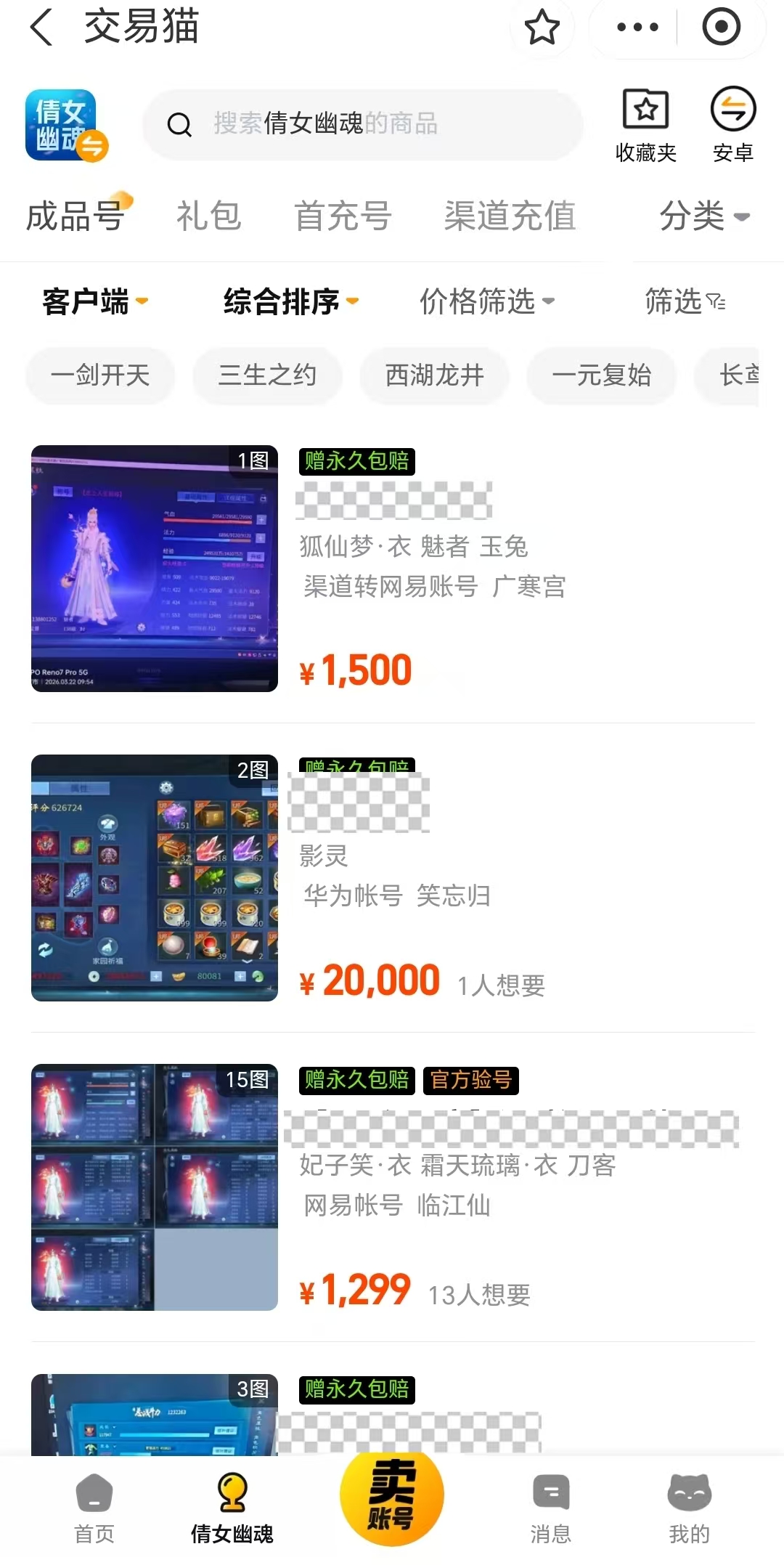 使用方便是交易猫第一大优点。安卓的用户只需点击上方链接即可下载,ios的用户前往官网也能买号。进入之后搜索倩女幽魂可进入对应的专区。这里已经分门别类地将商品陈列,里面的号涵盖丰富,细节异人、高修画魂等主流的流派都有,买家可以按照喜好来进行筛选和购买。每个号在上架之前都通过了平台的严格审核,确认账号是否实名认证、有无被封禁的历史,一旦有信息不全、来源存疑等高风险,都会禁止上架,从根源降低购买的风险。