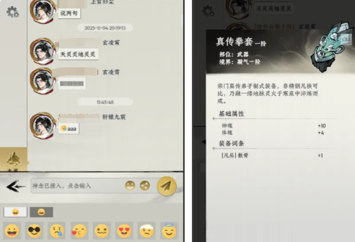 社交与养成维度同步进化:聊天模块上线原创修仙主题表情包库,支持即时情绪表达;道具共享功能开放,法宝、丹药等高价值物品可一键推送至频道,促进同门协作;全新“先知系统”重磅落地——角色新增“仙姿”核心属性,通过收集服饰、配饰等外观组件持续提升,等级成长同步强化气质辨识度,高阶外观还可兑换限定功能道具与特殊交互权益。
