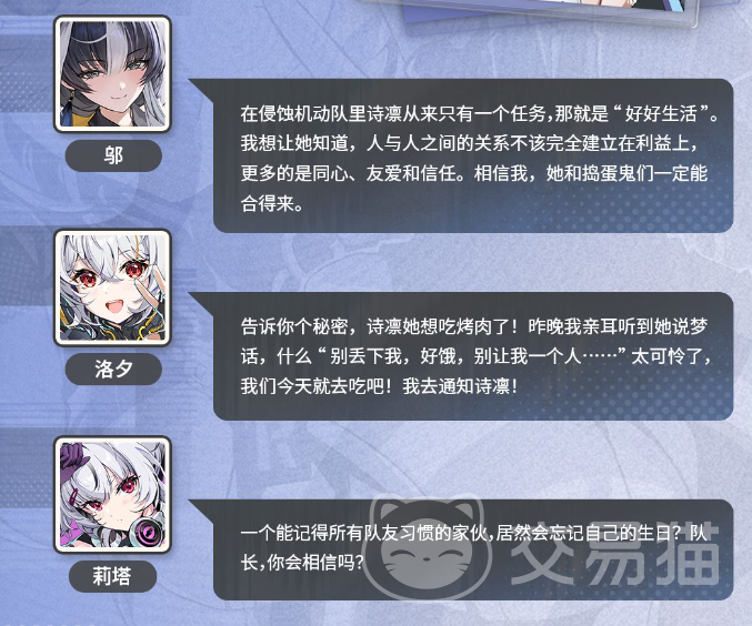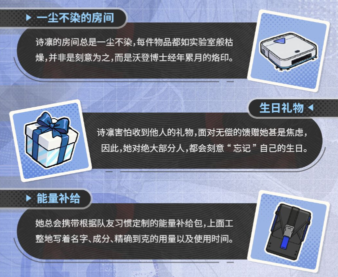 作为小队公认的标准化记录者,诗凛为每位成员定制专属能量补给包。每一份补给均附带精确标签,涵盖成分构成、分配时序、摄取条件及代谢建议等多维参数。这种将工程思维与人文观察深度融合的能力,使其成为连接战术执行与心理韧性的关键节点。