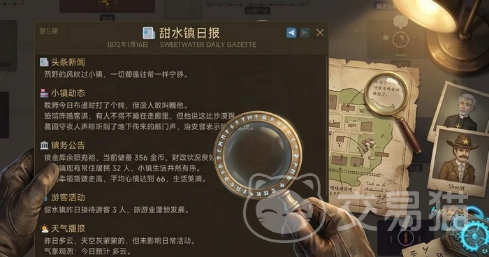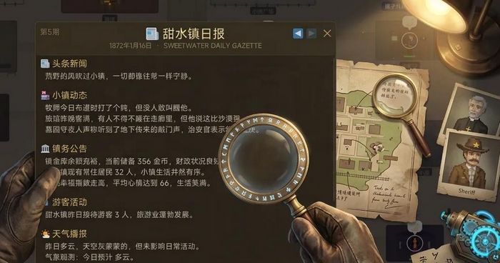 场景建筑体系完整还原西部拓荒时期风貌,包含酒馆、教堂、地下赌场、淘金营地等标志性场所。玩家可通过招募对应职业居民入驻特定建筑,逐步激活其功能模块,推动小镇从初始冷清状态逐步发展为具备完整生态循环的生活社区。每日清晨自动生成的《小镇日报》,将汇总前一日发生的异常事件、人物动向及环境变化,成为玩家解读世界运行规律的重要线索来源。