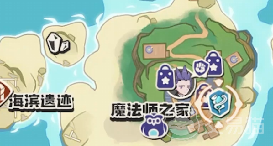 该精灵固定刷新于新手村左下方群岛区域的海滨遗迹内。具体路径为:从沙滩上的大型眠枭庇护所出发,持续向西行进,穿越海滩后继续西行,抵达群岛末端即可发现遗迹入口。注意入口并非正对海滩,需绕至群岛侧后方才能进入。