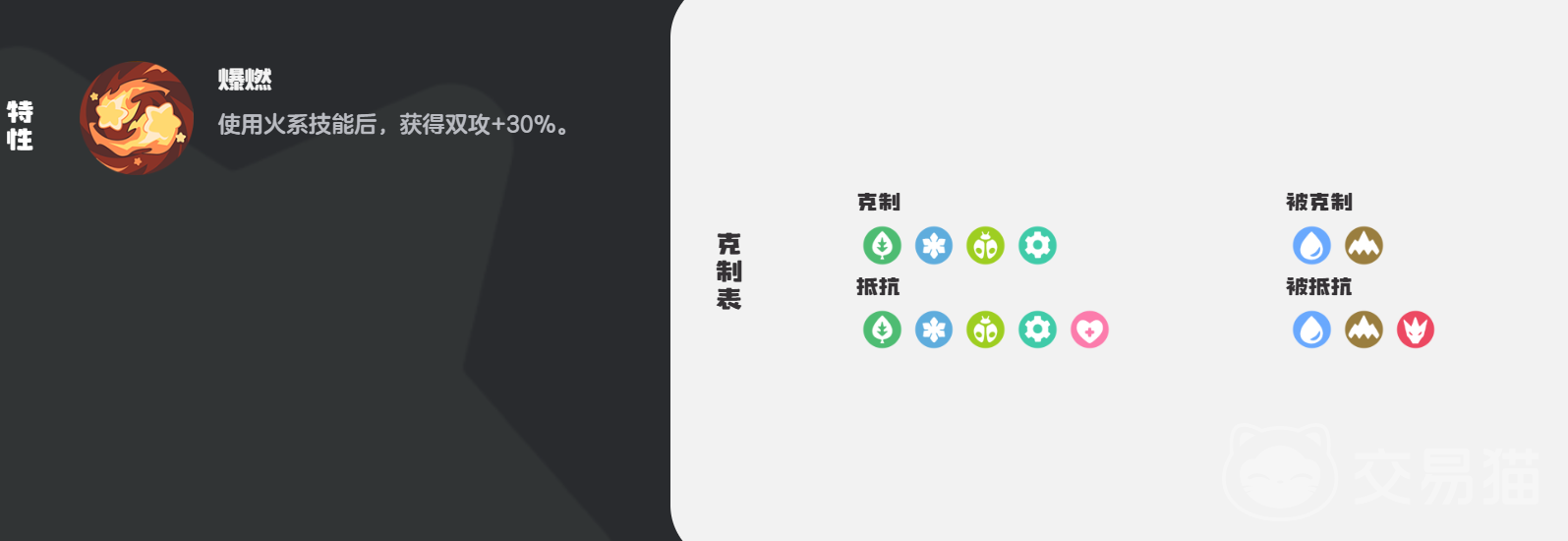 该宠技能体系以“快+狠”为设计内核:多数主动技能具备先制等级加成,且基础伤害系数高。实战中,应优先利用其速度优势抢占首回合,通过高伤技能迅速压低敌方血线。火系克制冰系的固有机制,使其在对抗冰属性对手时伤害翻倍;面对上古战龙等高防御型目标时,亦可通过连续先手施压,打乱其技能释放节奏,削弱其坦度优势。
