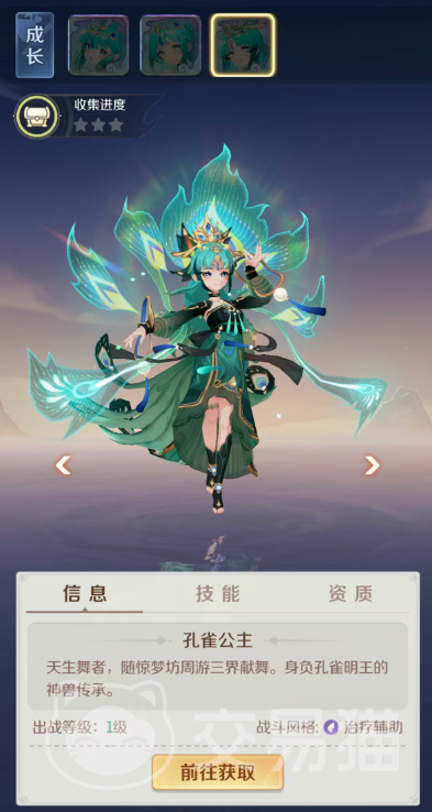 「孔雀公主」是团队续航体系的核心支点。基础治疗可同步恢复3名友方单位至最大气血值;强化后不仅可清除全体己方减益与控制效果,更解锁群体复活机制——单次技能可复活2名倒地队友(复活后治疗量减半)。该能力使其成为对抗强控流、毒伤流及高爆发阵容的首选辅助。