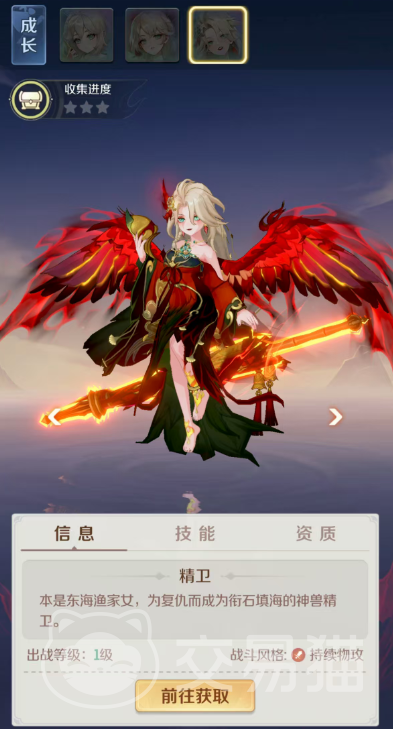 「精卫」以持续伤害与战术协同见长。普攻对前三名敌人造成87%物理伤害,并附加持续2回合的中毒诅咒;群攻时触发“毒爆”效果,实现两段式输出。其被动“血祸”可随攻击次数叠加层数,提升自身爆发阈值;同时,当队友行动后,精卫将获得额外普攻伤害加成,形成稳定的协同输出链,在持久战与多波次作战中优势显著。