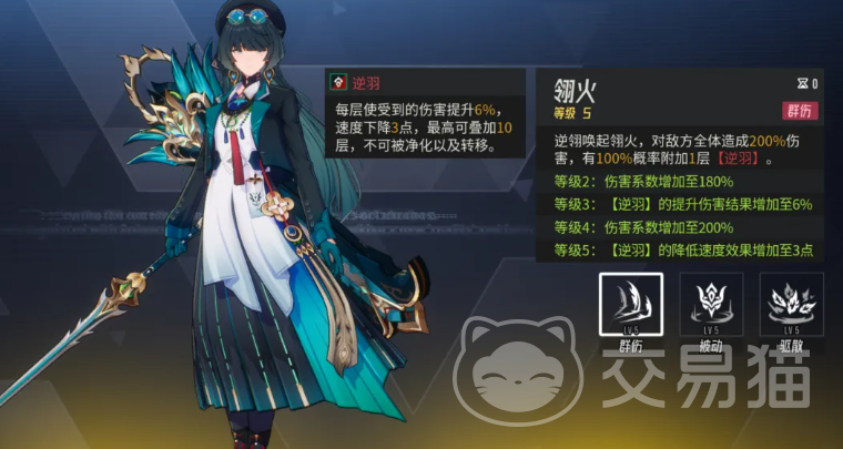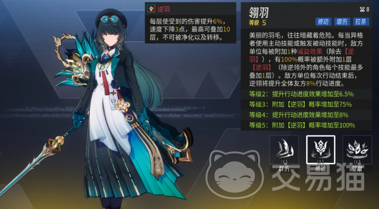 她的被动技能“翎羽”进一步强化了该机制:每当敌方单位因我方其他角色而新增减益效果,逆翎即可立即为其追加一层逆羽。这意味着队伍中存在多个控场或debuff型角色时,逆翎的叠层效率将显著提升。此外,在敌方行动回合结束后,逆翎还可为全体友方单位提供行动条推进(拉条),该效果受自身速度属性直接影响——若速度不足,则拉条收益受限;反之,高速度下的逆翎不仅能频繁行动,更能最大化逆羽覆盖率与大招释放频率。