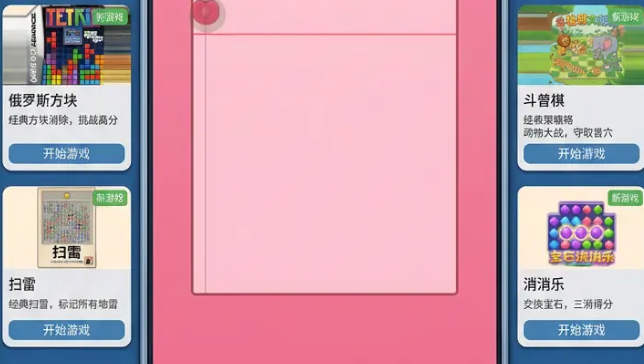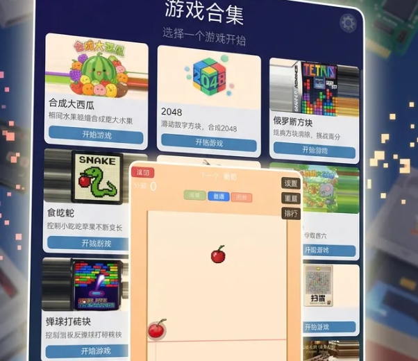 在经典玩法还原方面,项目组着重打磨操作一致性:《贪吃蛇》回归基础方向键控制逻辑,蛇身随进食自然延展;《俄罗斯方块》延续标准方块下落、旋转与消行机制,支持连续堆叠挑战高分;此外,《宝石消消乐》《扫雷》《果了个果》等也全部纳入其中,实现单包集成、免切换、零跳转的流畅体验。
