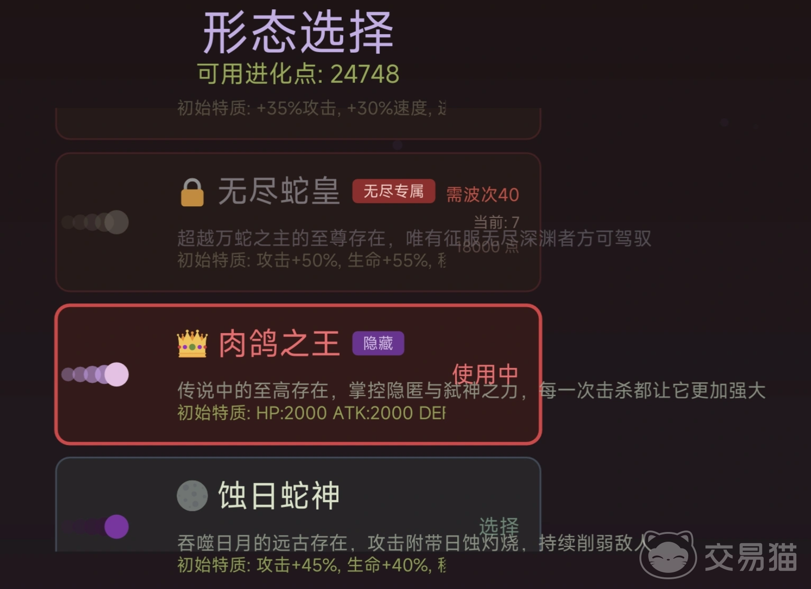 在角色成长维度,游戏采用“形态驱动型”养成模型:每一次成功捕食或战斗胜利,都将同步提升体型参数、移动速度、抗性阈值等底层属性,并解锁新的行为状态模块。玩家的核心成长目标明确指向生态位跃迁——最终成为所在区域无可争议的食物链顶端存在。为强化正向反馈,系统设置了阶梯式成就体系,通关挑战后可即时获得金币、稀有外观部件及功能性道具等奖励。